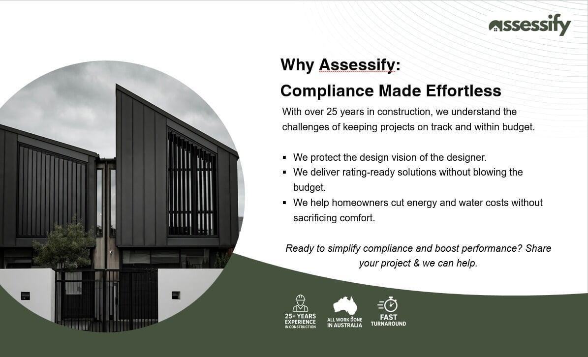 Assessify is a BASIX & NatHERS consultant who produces energy assessments for new residential renovations over $50000, new granny flats, homes, duplexes & townhouses to meet energy efficiency requirements of the NCC. These assessments are submitted with the housing plans for development approval prior to the construction of the home.